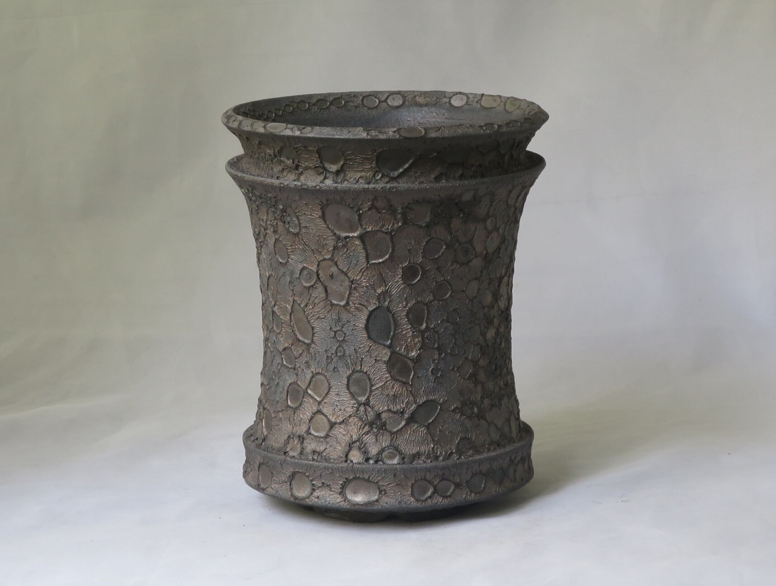 焼き上がりには、黒や金のマットな質感やクレーター状の凹凸など、多彩で力強い表情が現れます。