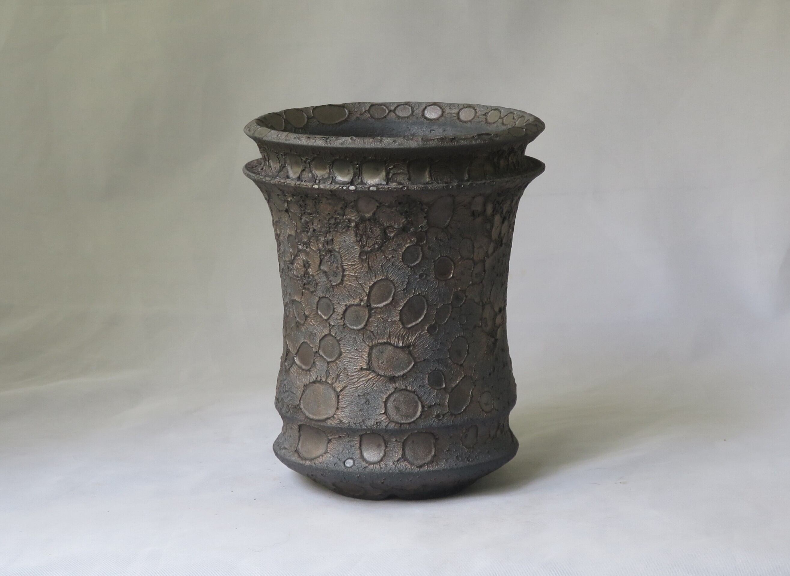 焼き上がりには、黒や金のマットな質感やクレーター状の凹凸など、多彩で力強い表情が現れます。