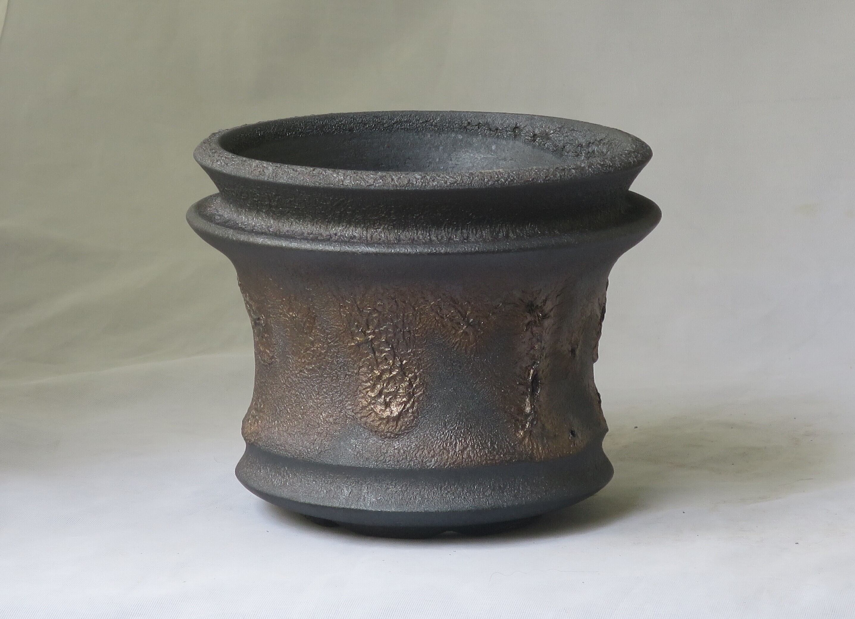 焼き上がりには、黒や金のマットな質感やクレーター状の凹凸など、多彩で力強い表情が現れます。