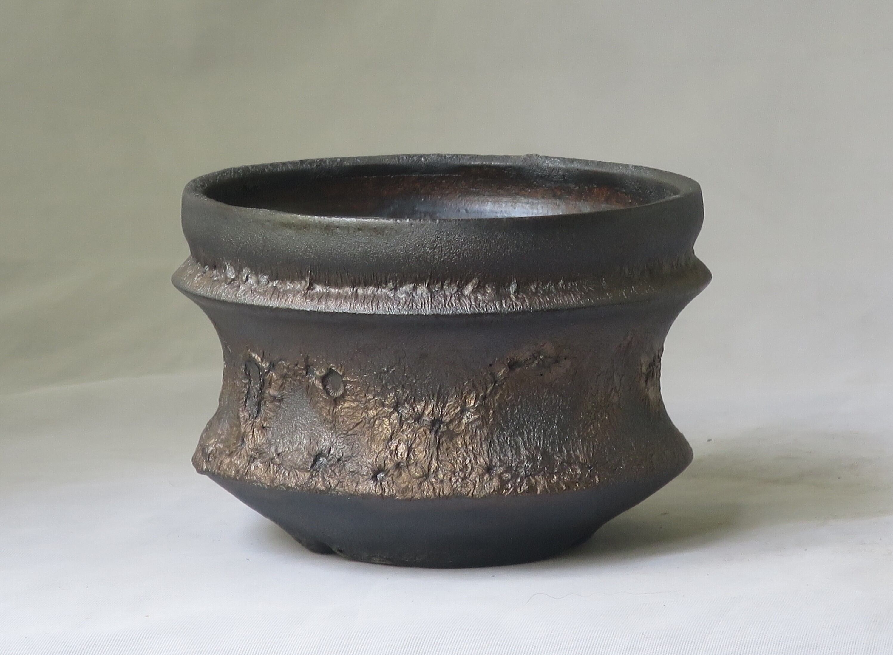 釉薬には、大地に含まれる鉄・銅・マンガンなどの金属成分を多めにブレンドし、1240℃の高温で還元焼成しています。