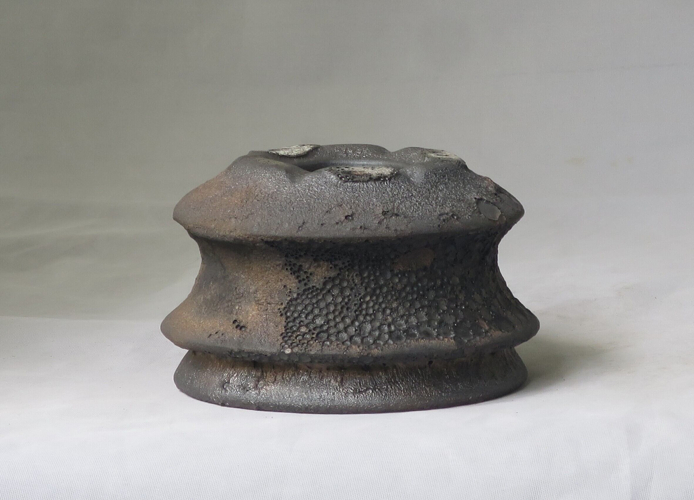焼き上がりには、黒や金のマットな質感やクレーター状の凹凸など、多彩で力強い表情が現れます。