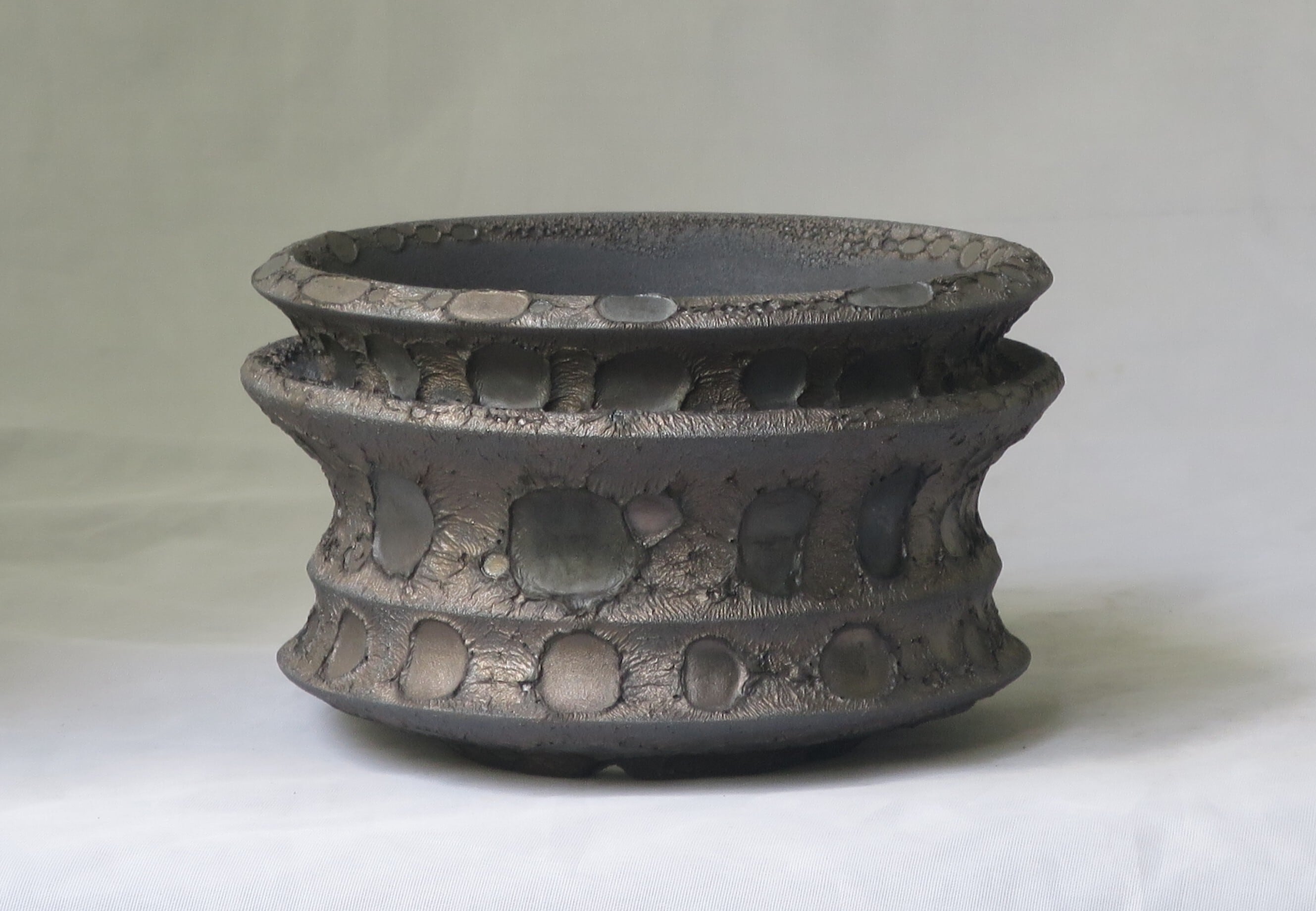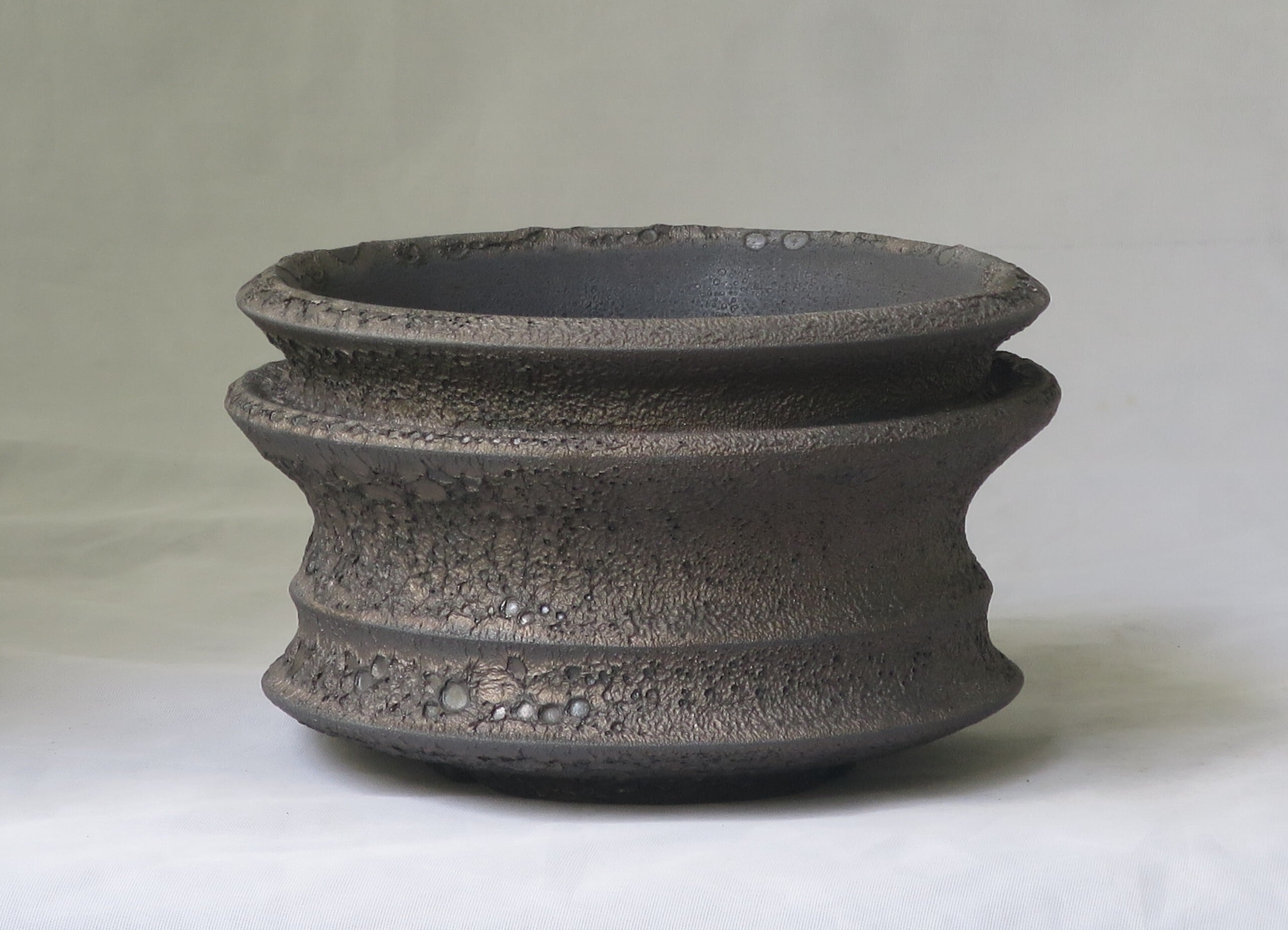 焼き上がりには、黒や金のマットな質感やクレーター状の凹凸など、多彩で力強い表情が現れます。