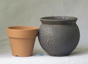 サイズ比較用に映っている素焼きポットは「3号サイズ(外径9.5cm × 高さ8.3cm)」です。