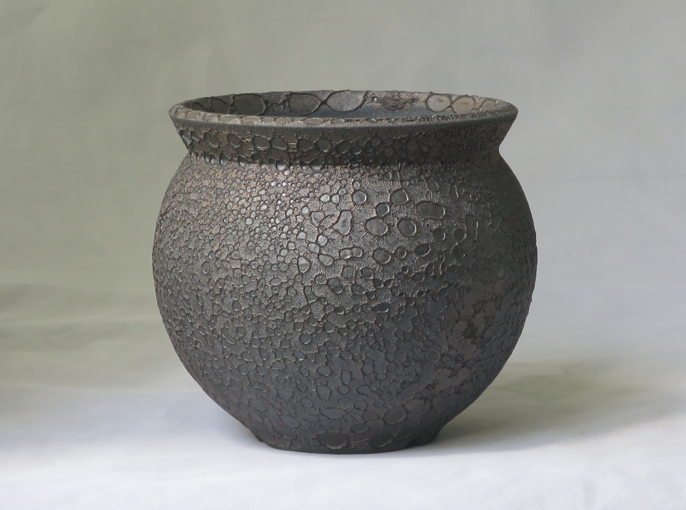 焼き上がりには、黒や金のマットな質感やクレーター状の凹凸など、多彩で力強い表情が現れます。