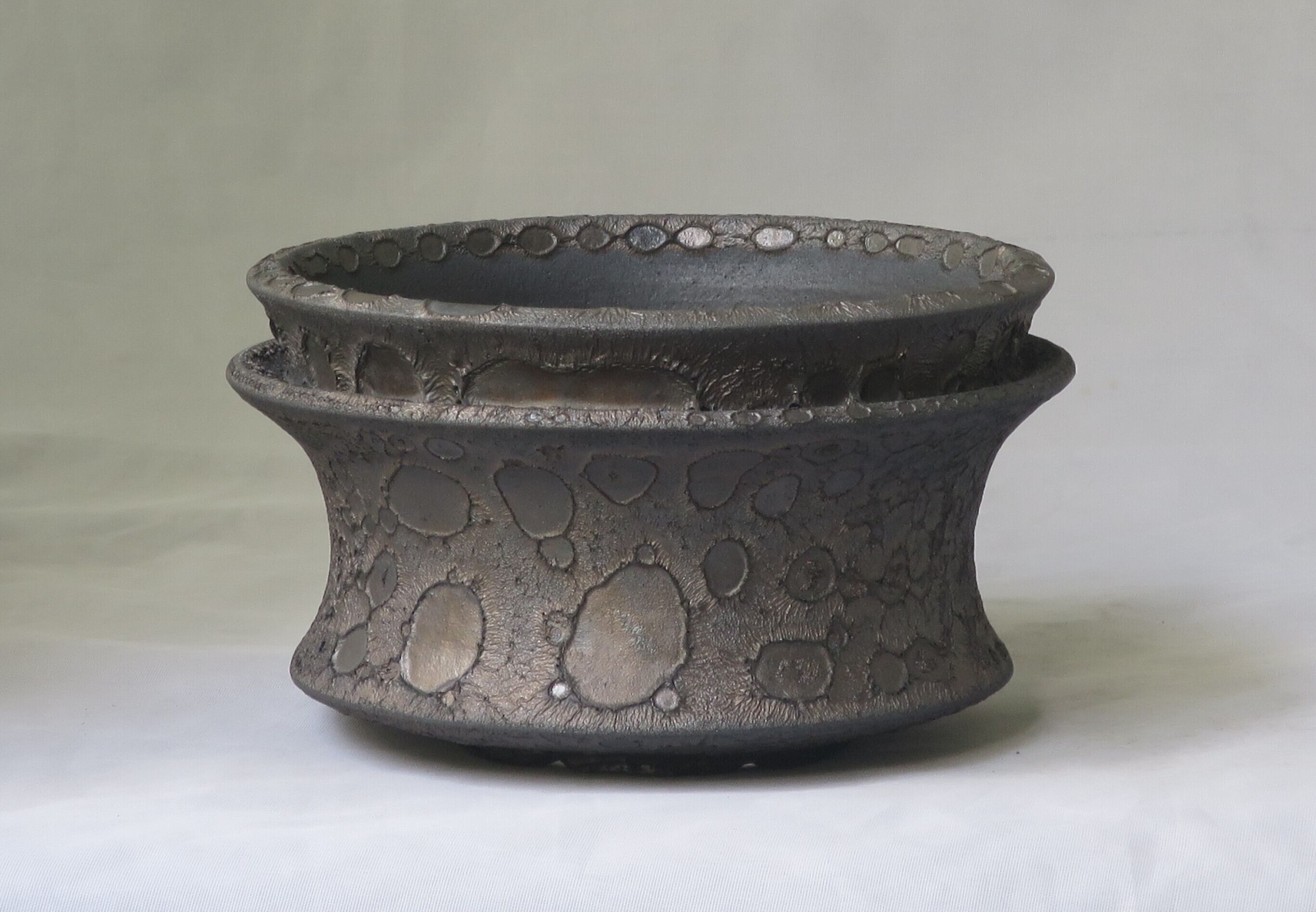 焼き上がりには、黒や金のマットな質感やクレーター状の凹凸など、多彩で力強い表情が現れます。