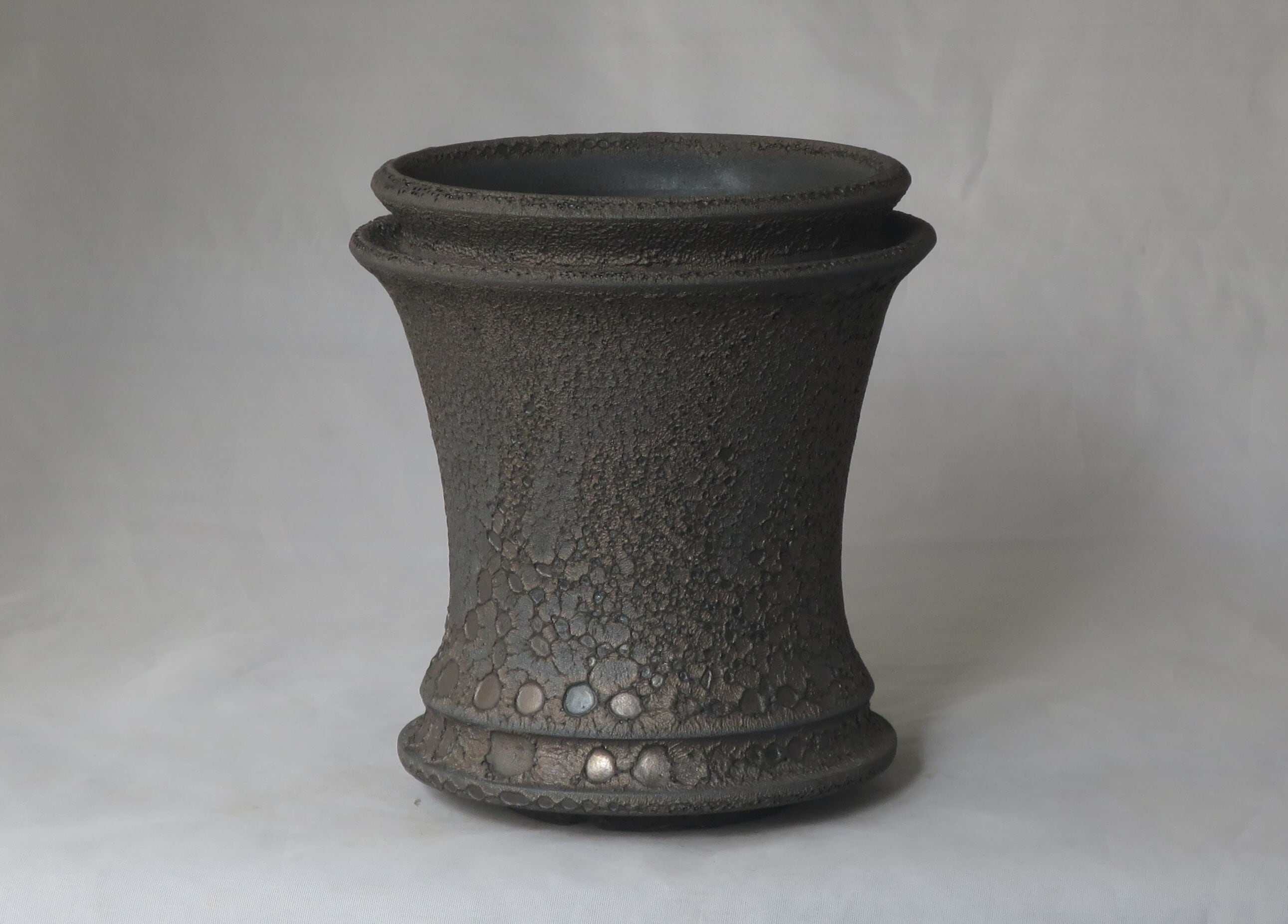 焼き上がりには、黒や金のマットな質感やクレーター状の凹凸など、多彩で力強い表情が現れます。