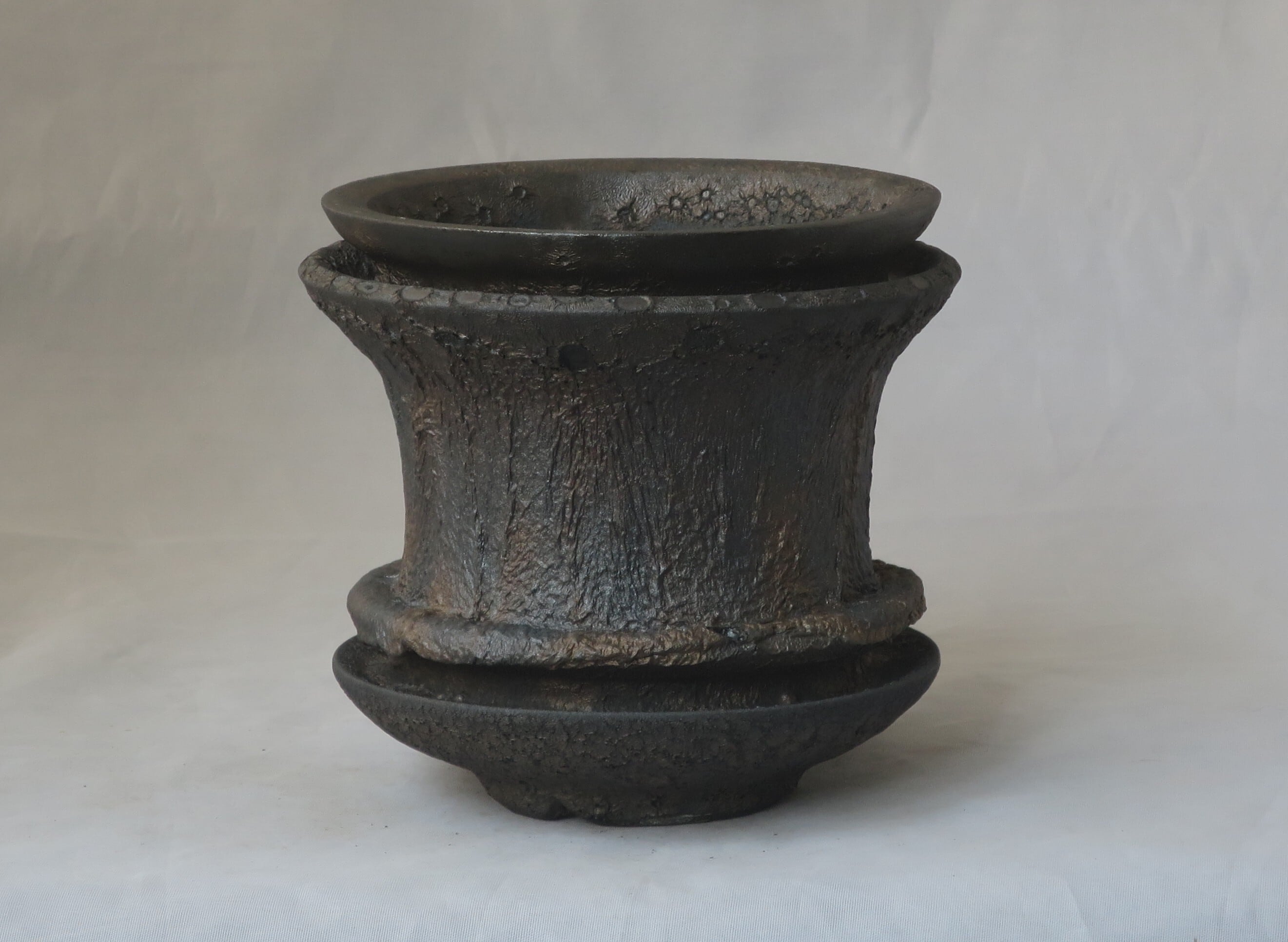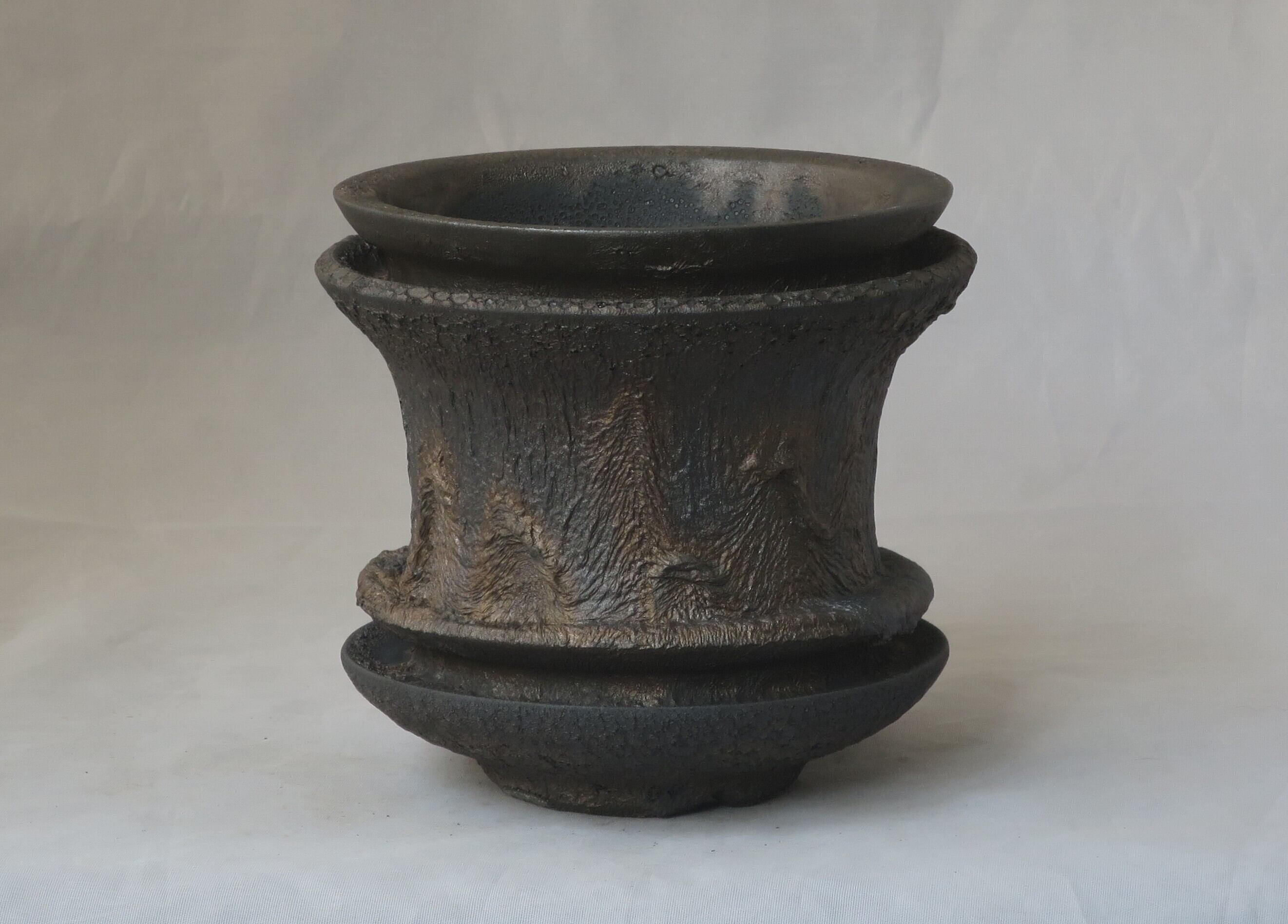 焼き上がりには、黒や金のマットな質感やクレーター状の凹凸など、多彩で力強い表情が現れます。