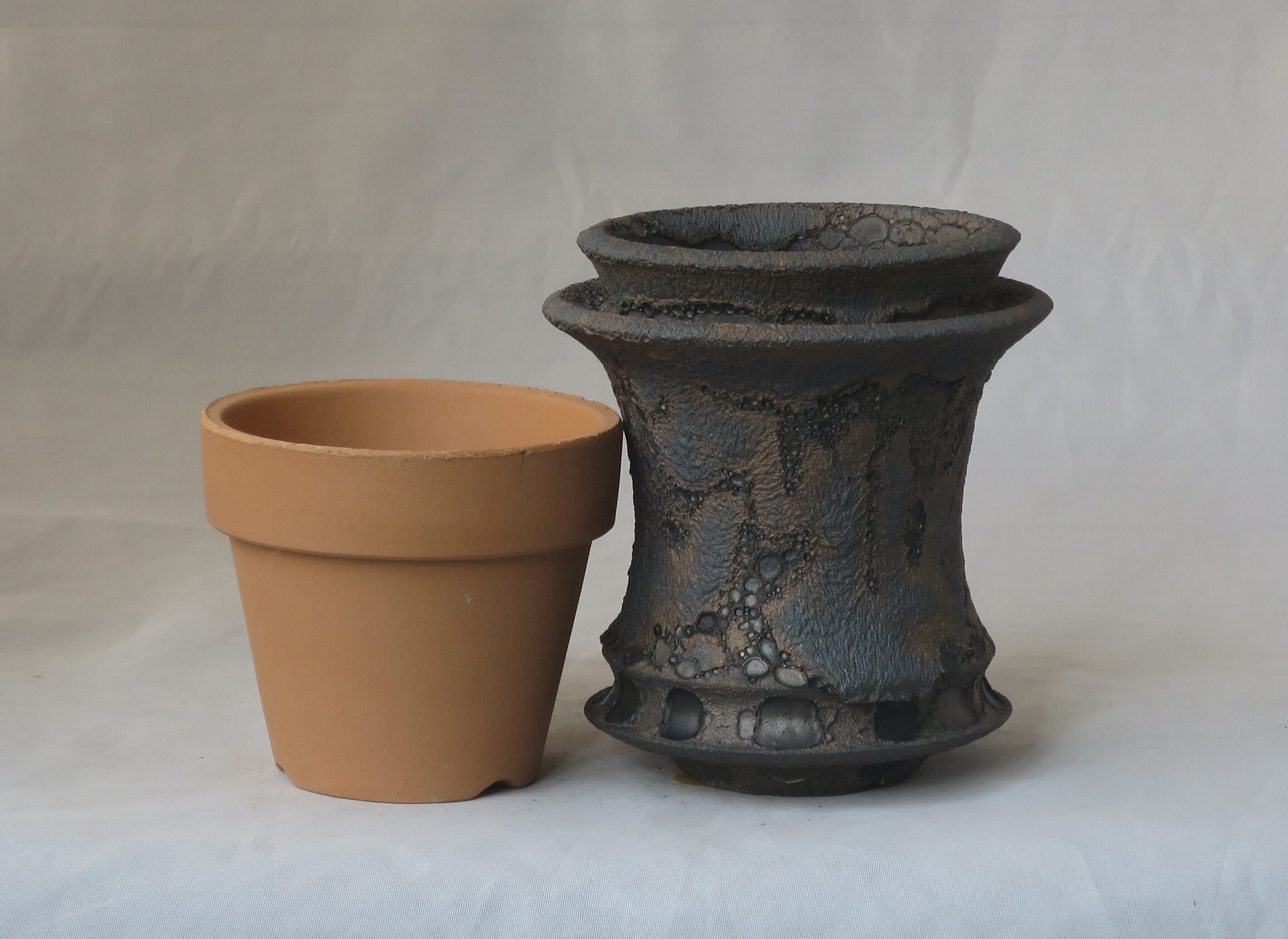 焼き上がりには、黒や金のマットな質感やクレーター状の凹凸など、多彩で力強い表情が現れます。