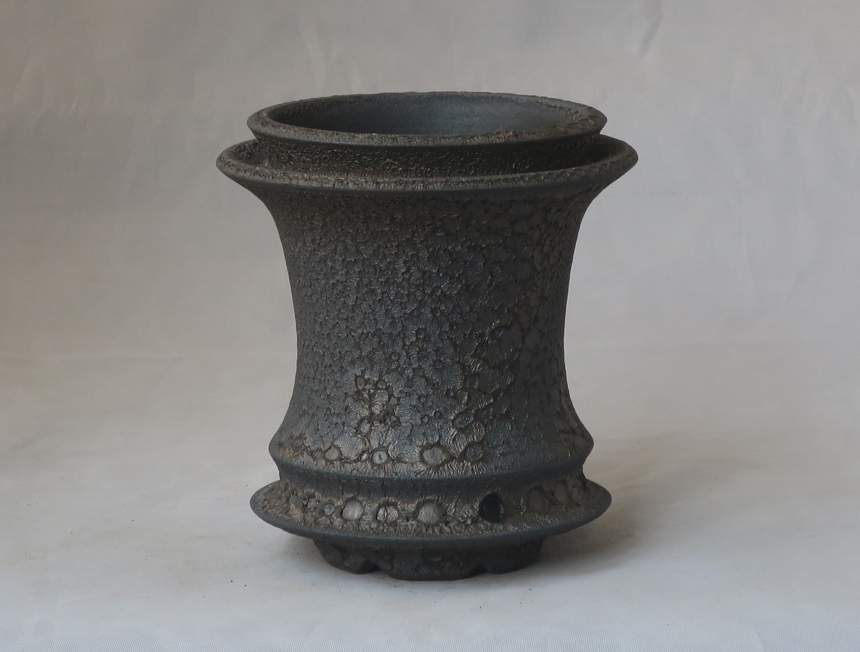焼き上がりには、黒や金のマットな質感やクレーター状の凹凸など、多彩で力強い表情が現れます。