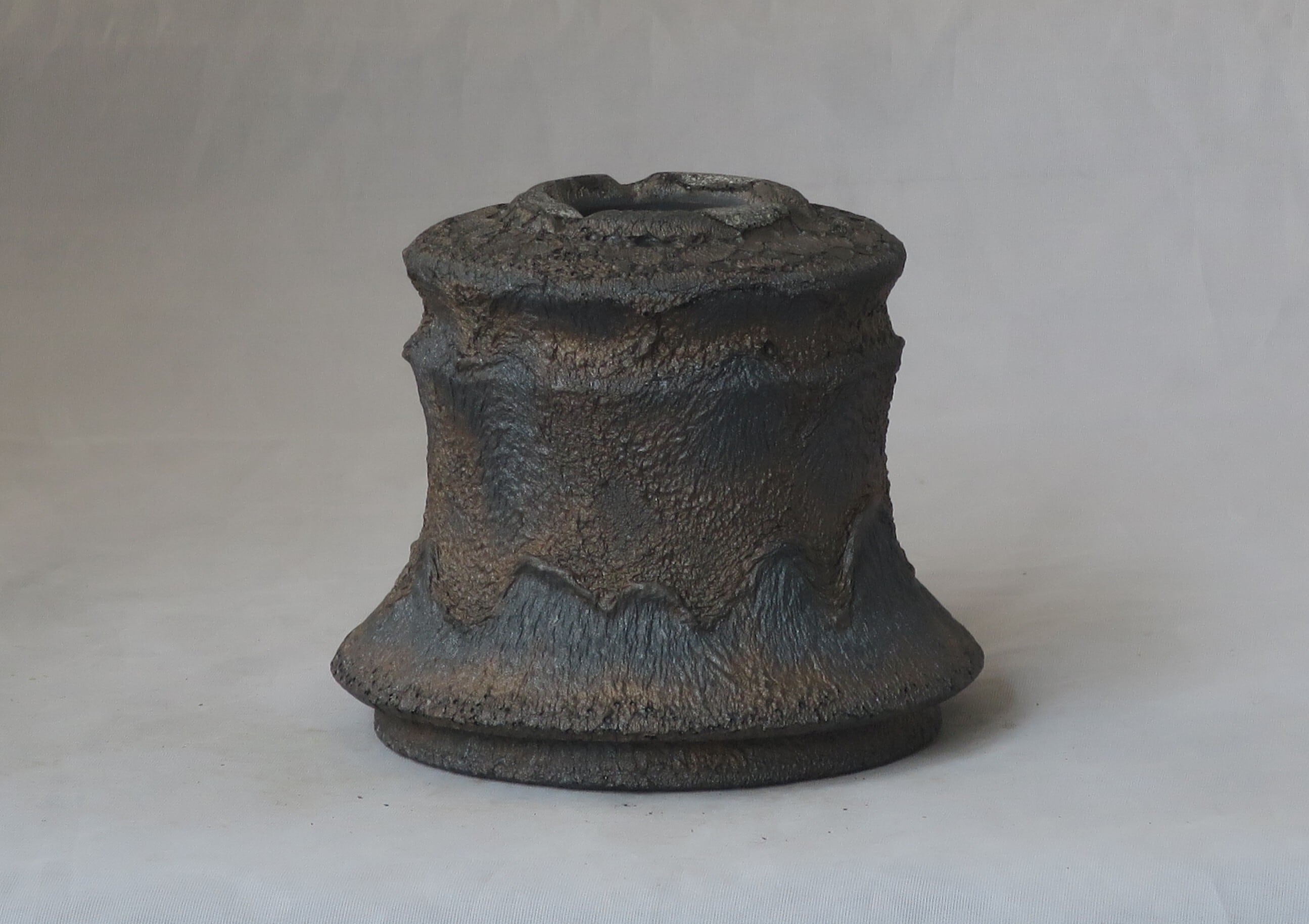 焼き上がりには、黒や金のマットな質感やクレーター状の凹凸など、多彩で力強い表情が現れます。