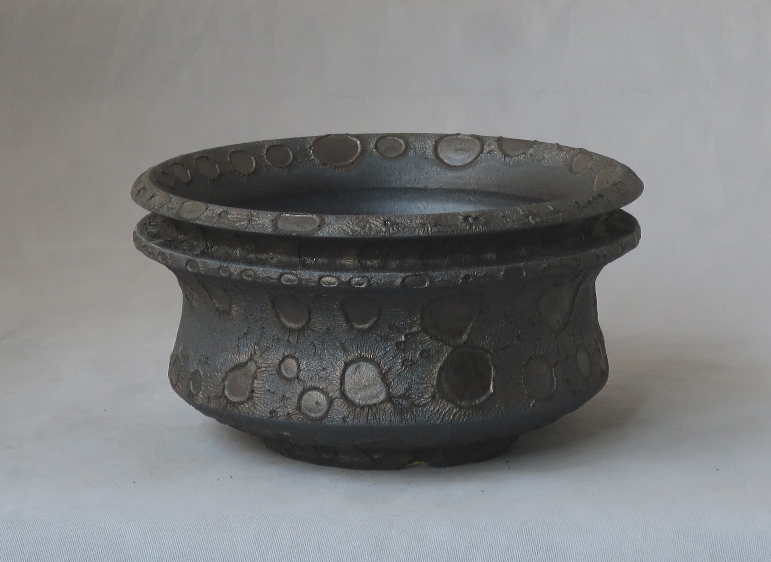 焼き上がりには、黒や金のマットな質感やクレーター状の凹凸など、多彩で力強い表情が現れます。