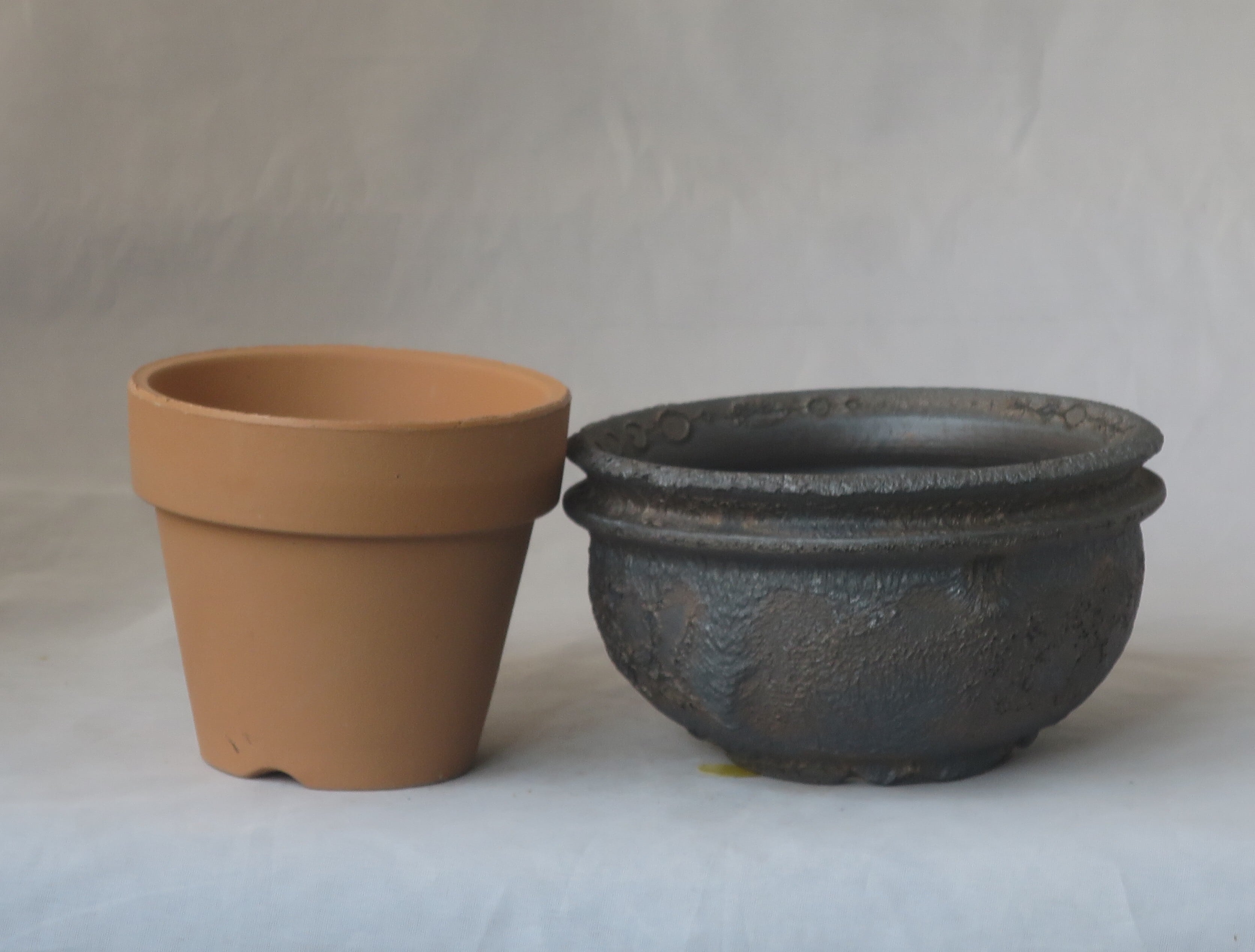 サイズ比較用に映っている素焼きポットは「3号サイズ(外径9.5cm × 高さ8.3cm)」です。