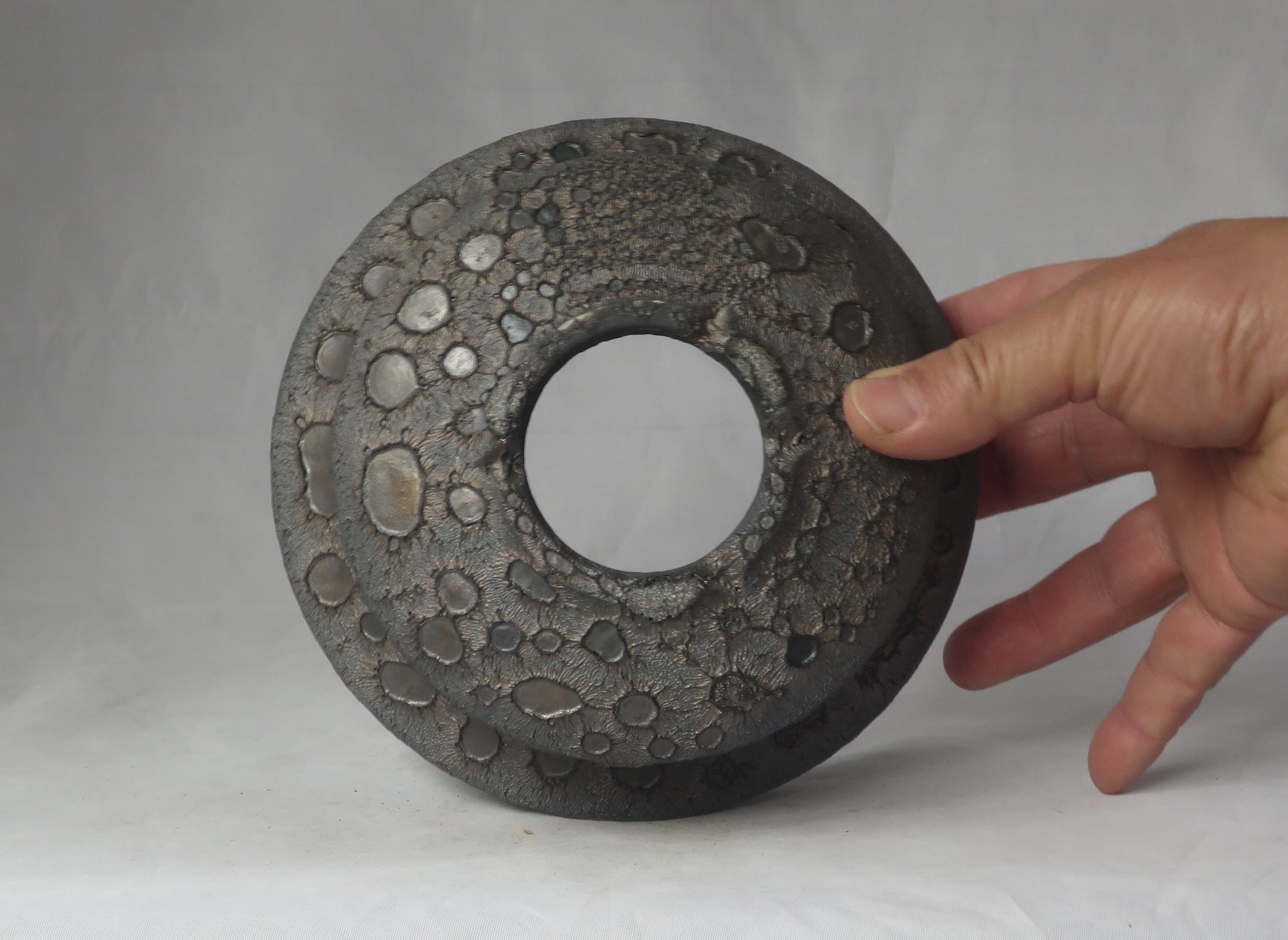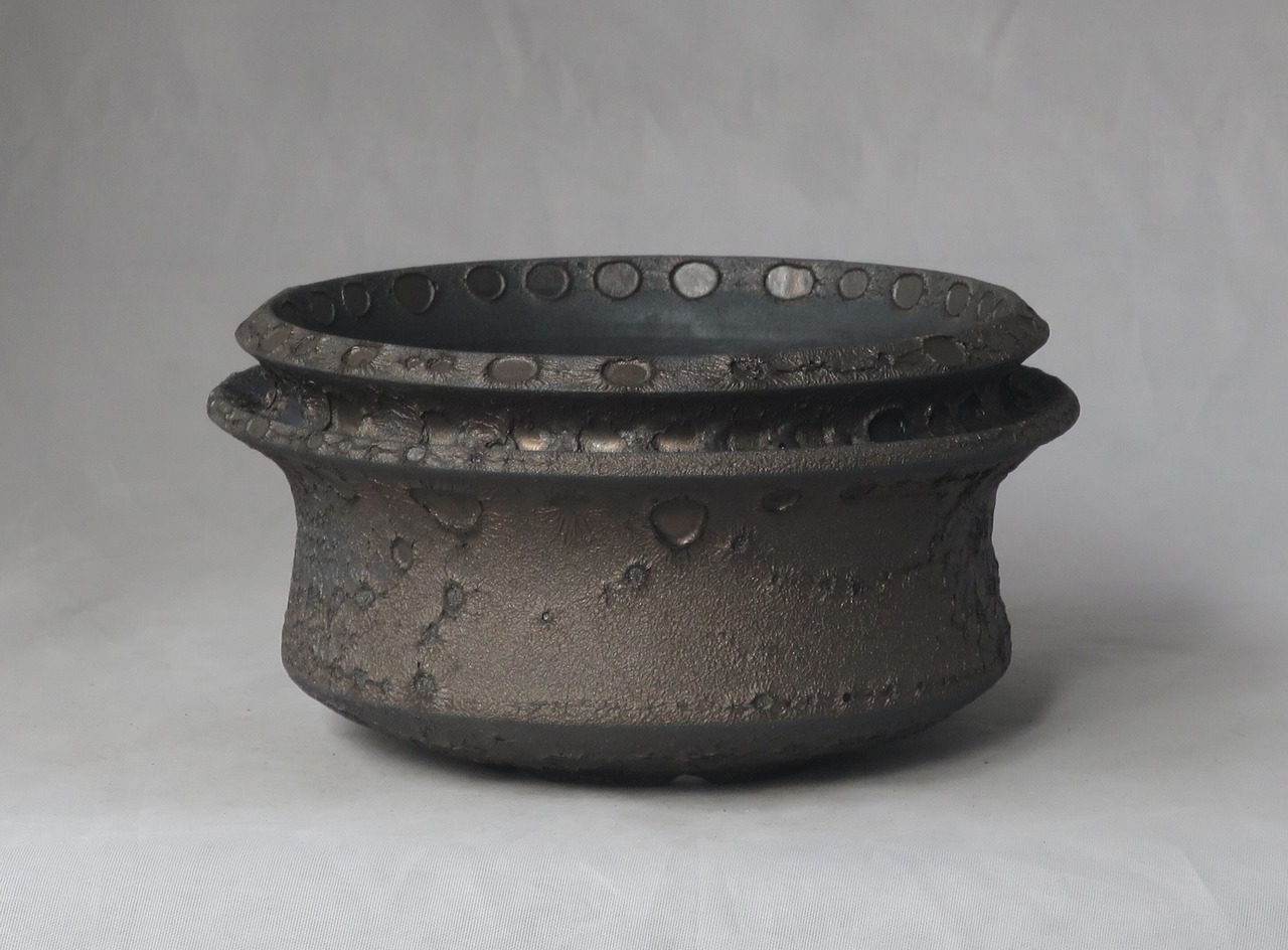 焼き上がりには、黒や金のマットな質感やクレーター状の凹凸など、多彩で力強い表情が現れます。