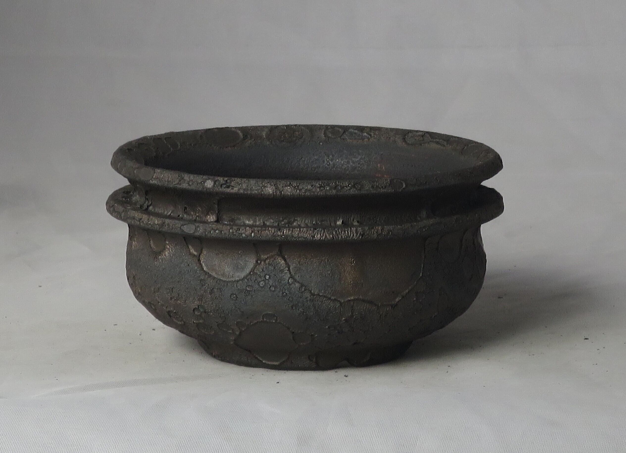 焼き上がりには、黒や金のマットな質感やクレーター状の凹凸など、多彩で力強い表情が現れます。