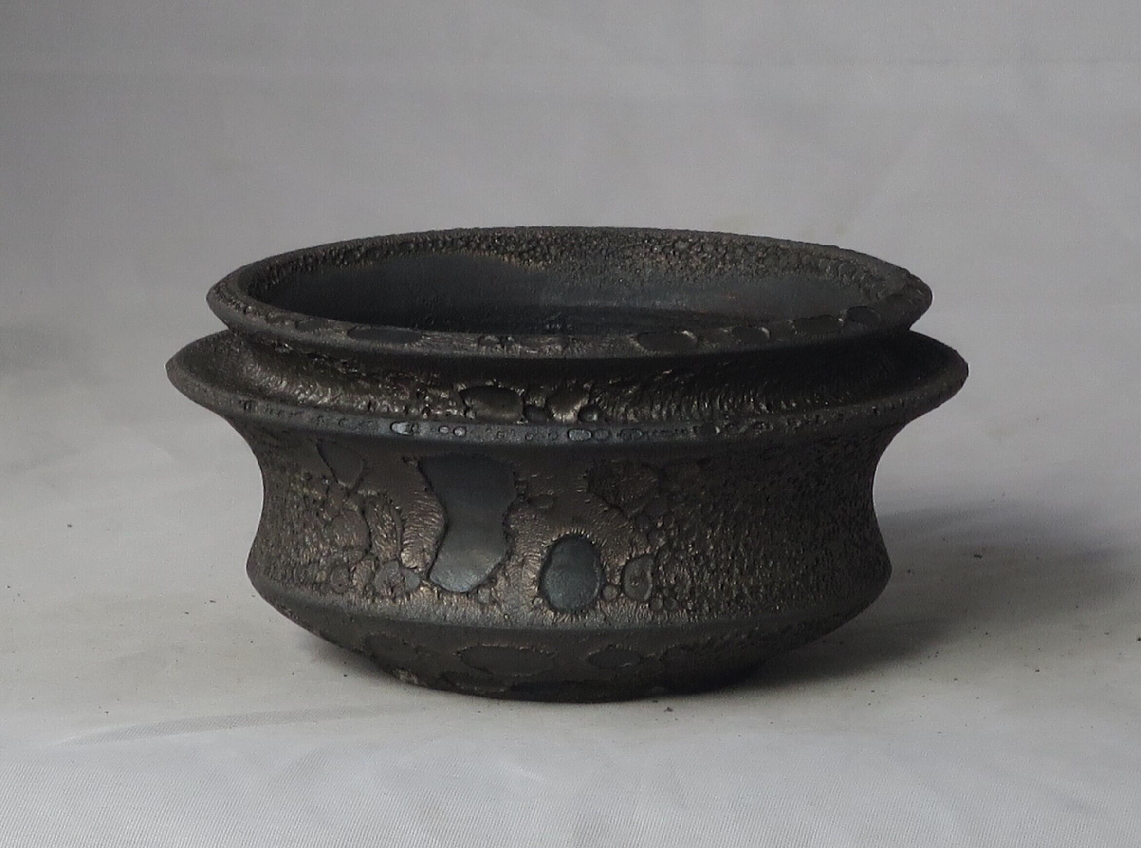 焼き上がりには、黒や金のマットな質感やクレーター状の凹凸など、多彩で力強い表情が現れます。