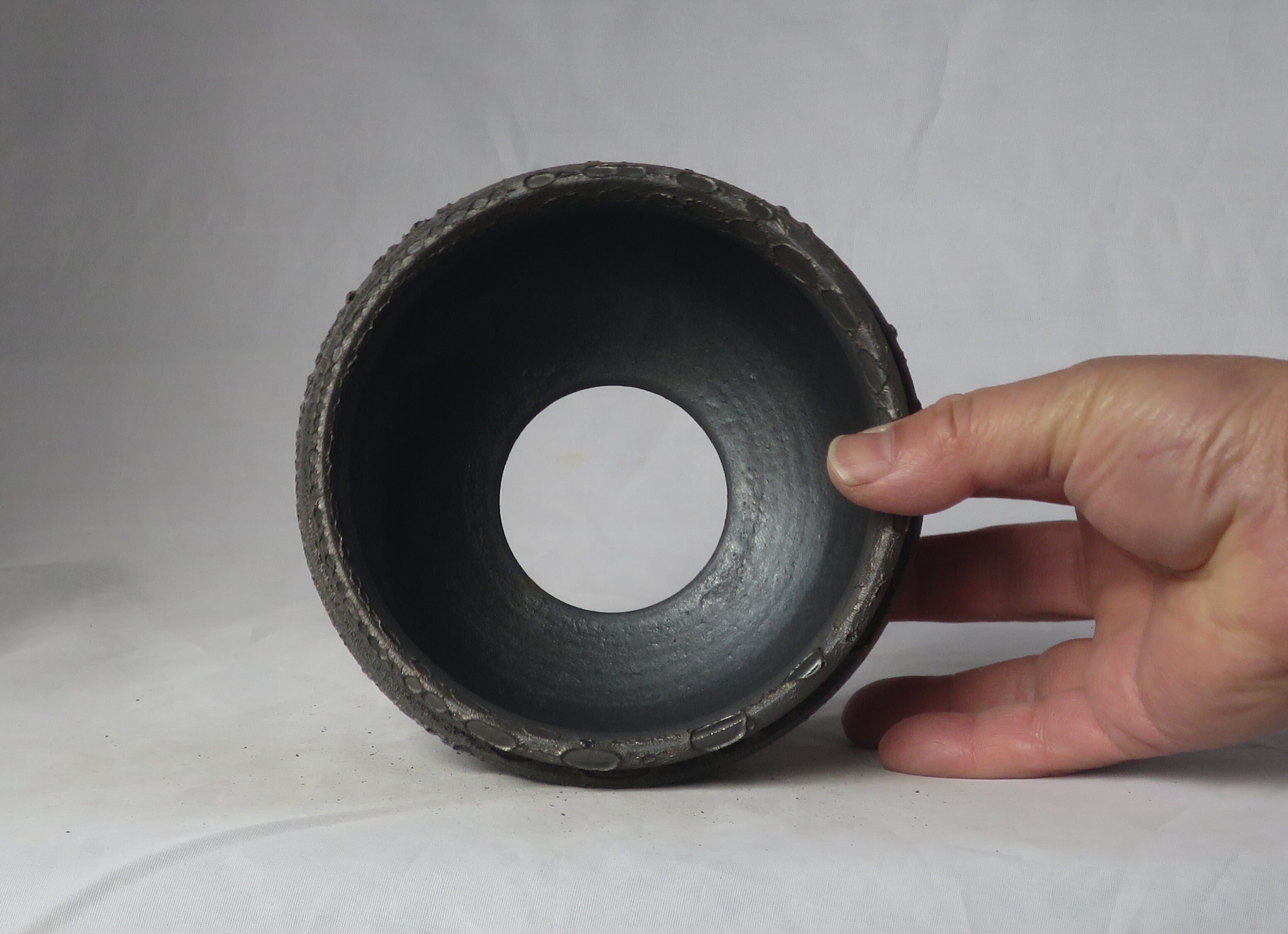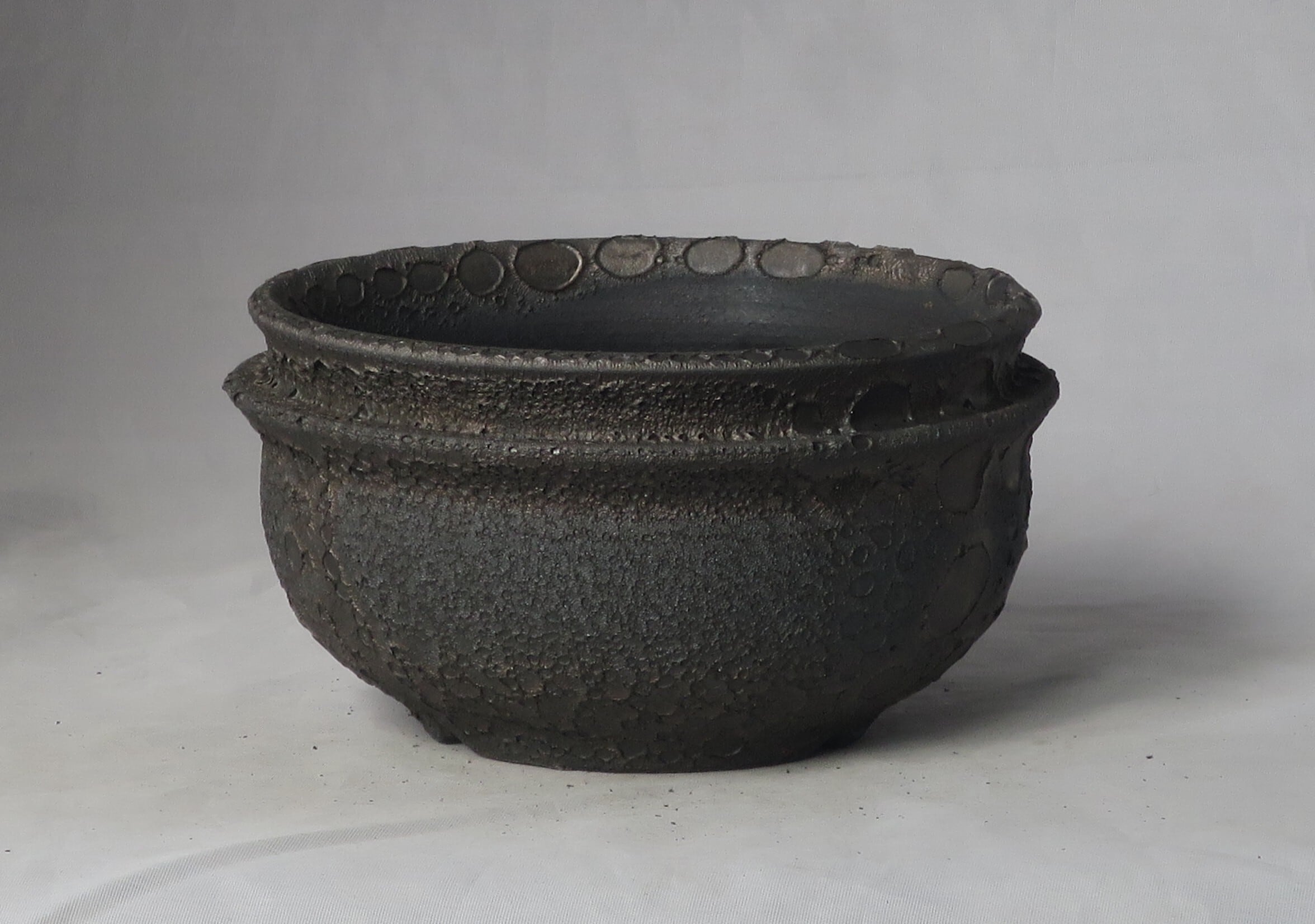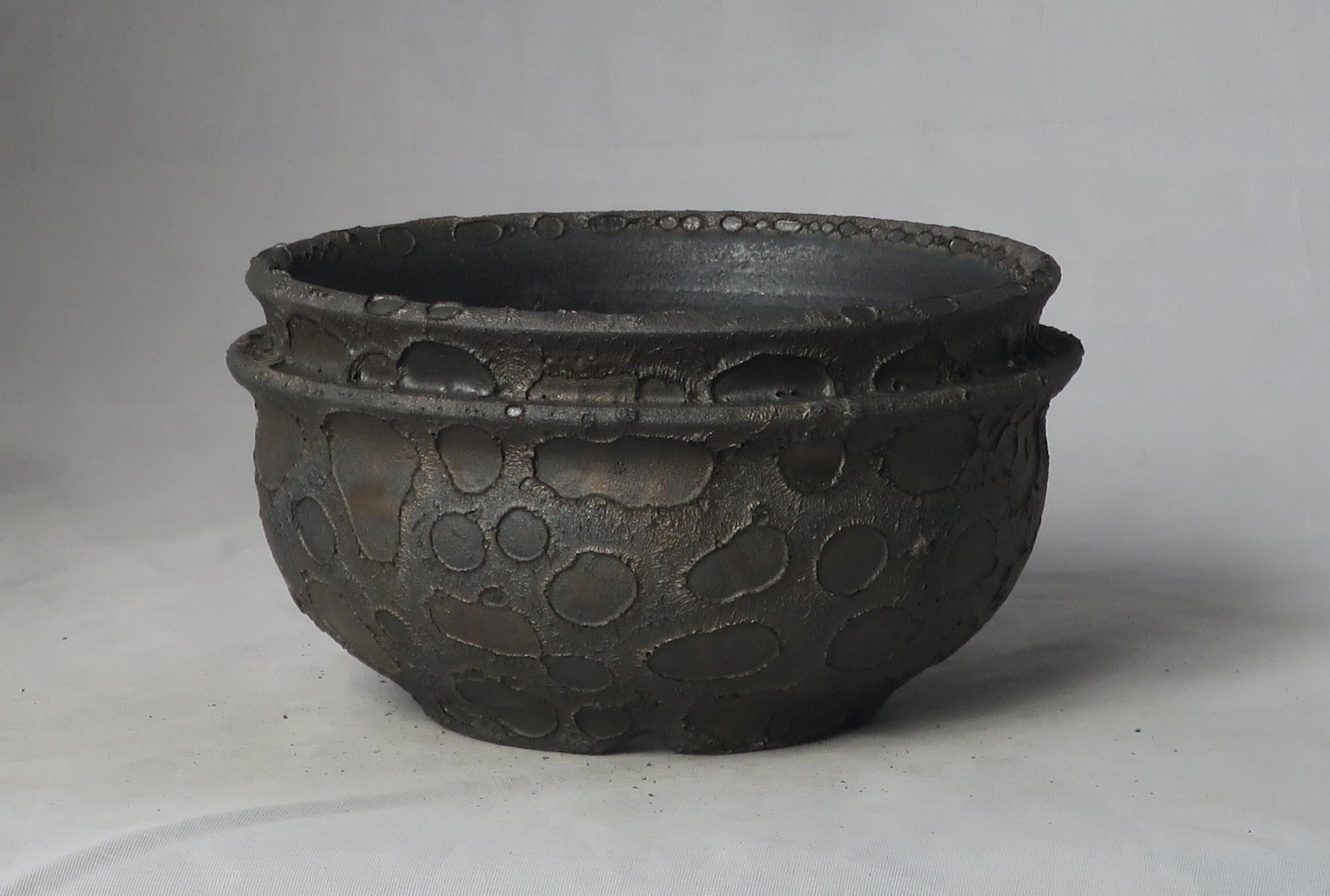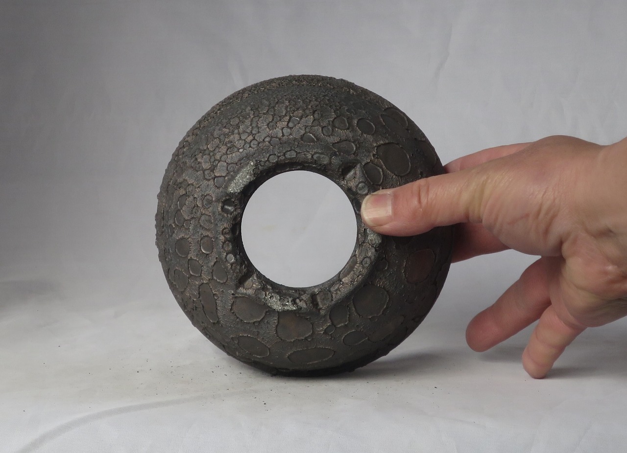 焼き上がりには、黒や金のマットな質感やクレーター状の凹凸など、多彩で力強い表情が現れます。