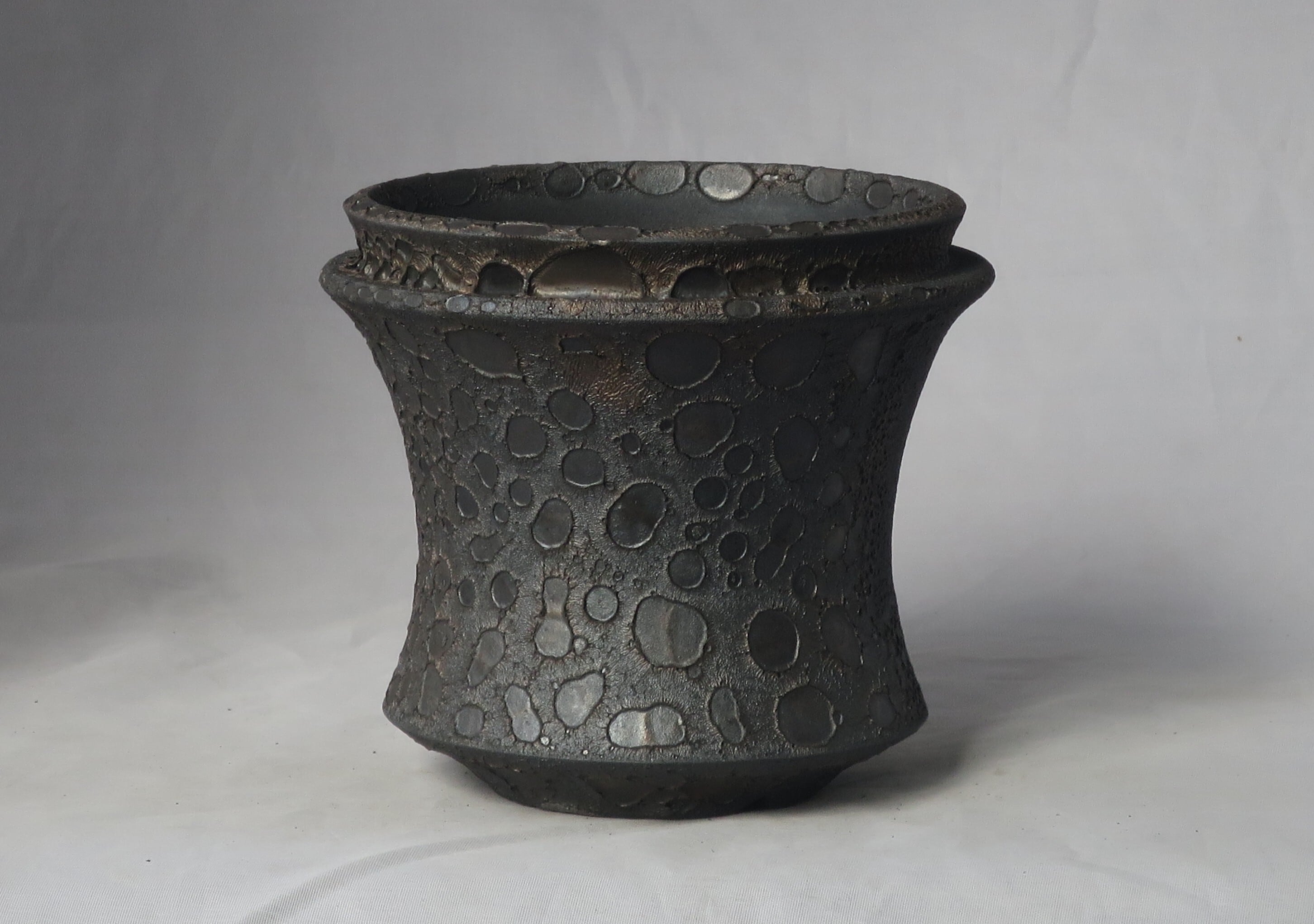 焼き上がりには、黒や金のマットな質感やクレーター状の凹凸など、多彩で力強い表情が現れます。