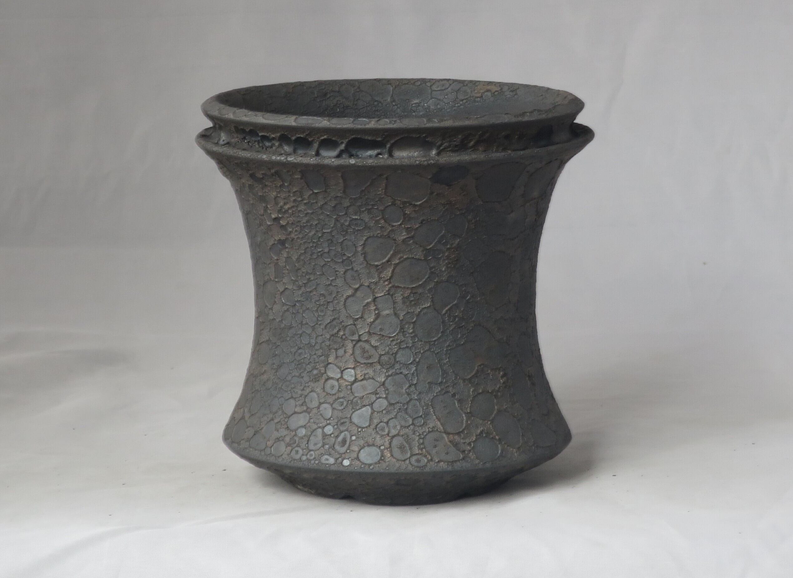 焼き上がりには、黒や金のマットな質感やクレーター状の凹凸など、多彩で力強い表情が現れます。
