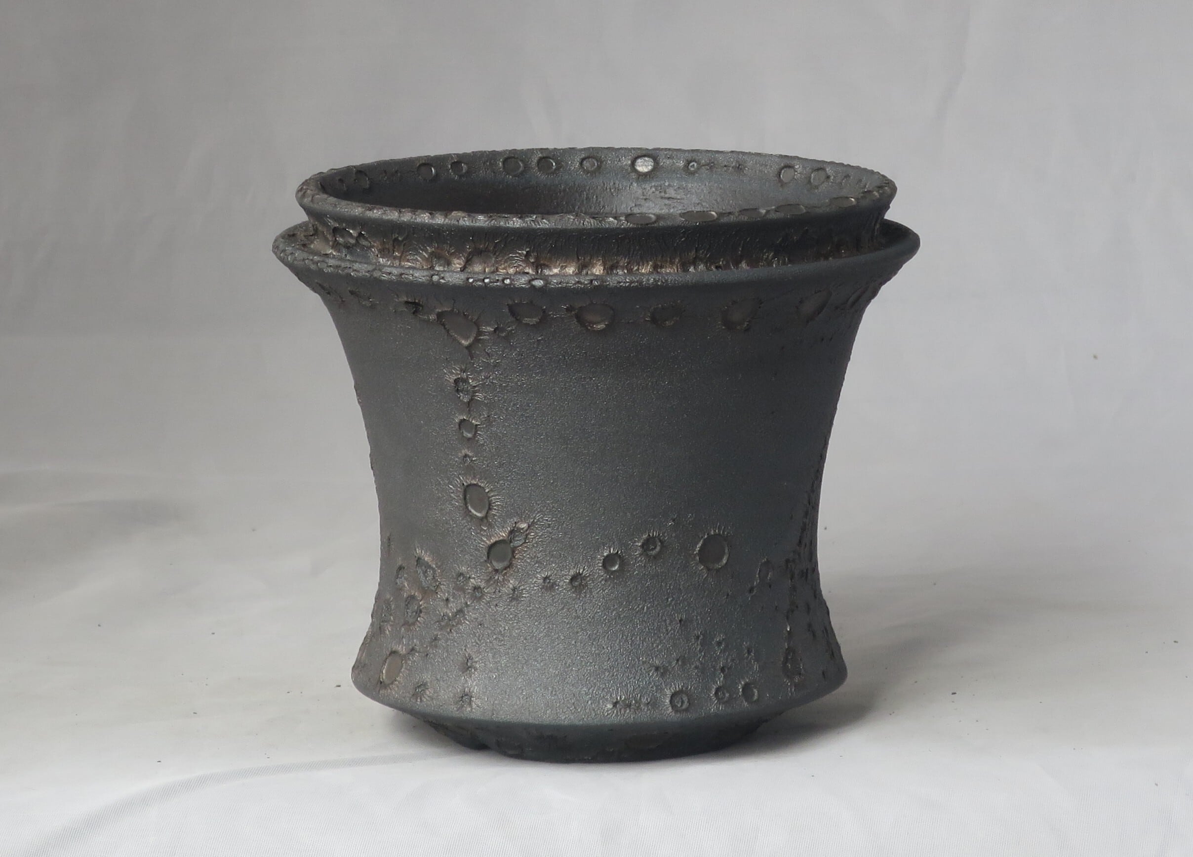焼き上がりには、黒や金のマットな質感やクレーター状の凹凸など、多彩で力強い表情が現れます。