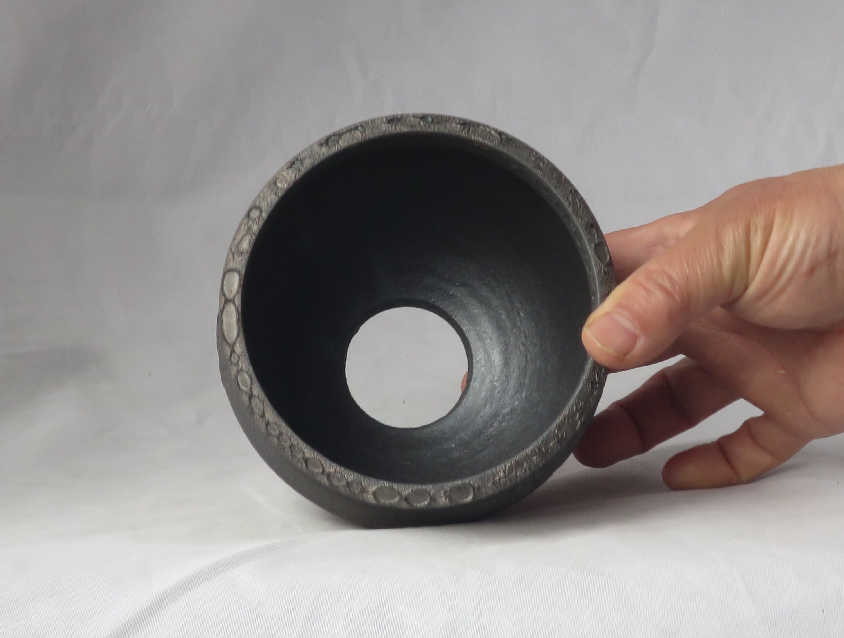 焼き上がりには、黒や金のマットな質感やクレーター状の凹凸など、多彩で力強い表情が現れます。