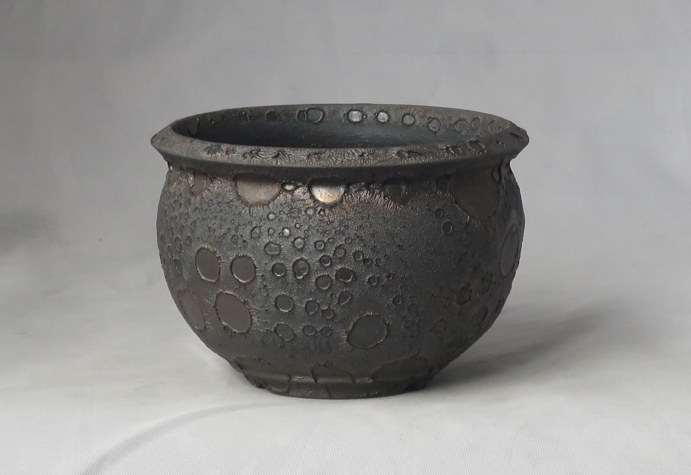 焼き上がりには、黒や金のマットな質感やクレーター状の凹凸など、多彩で力強い表情が現れます。