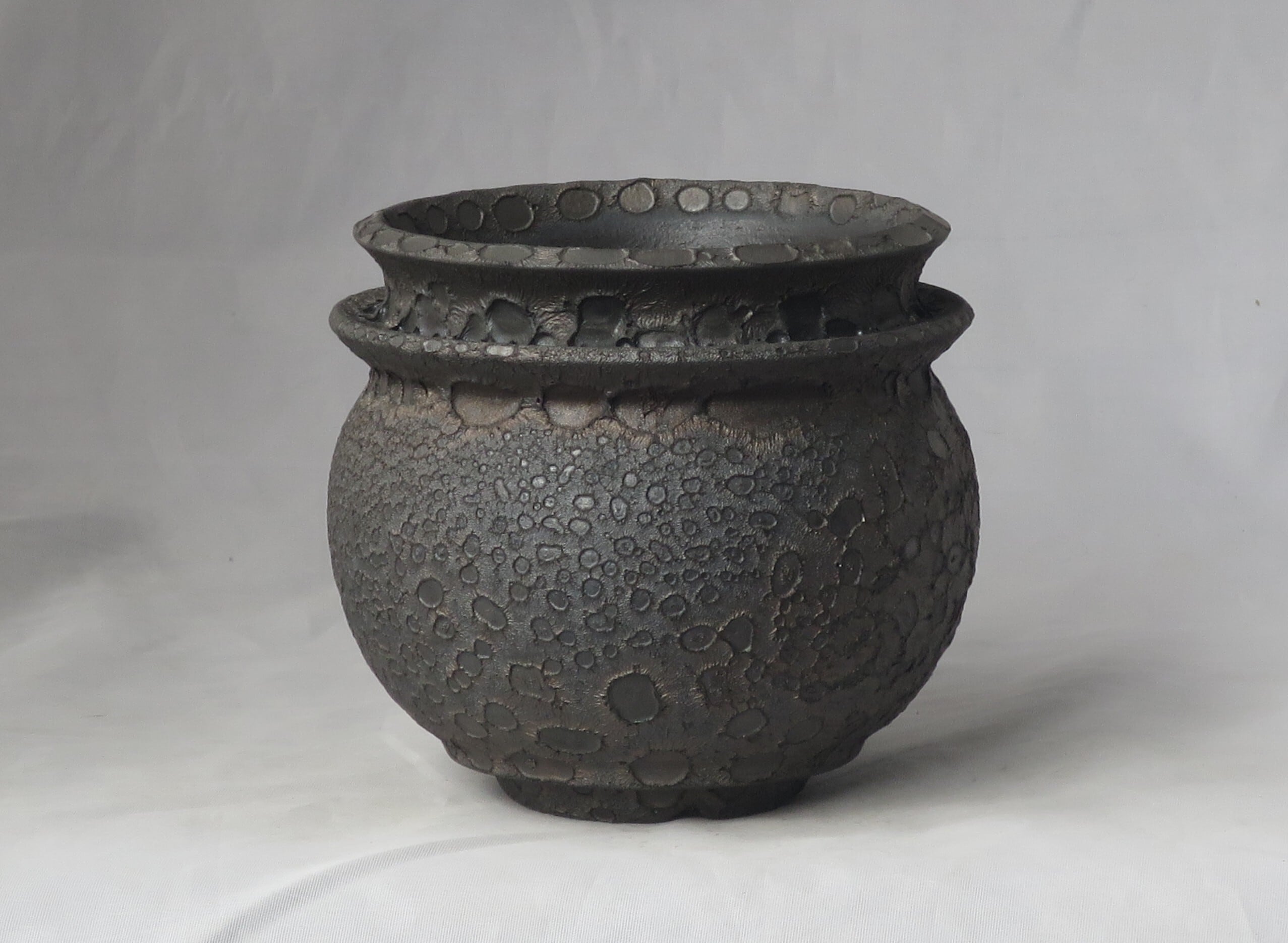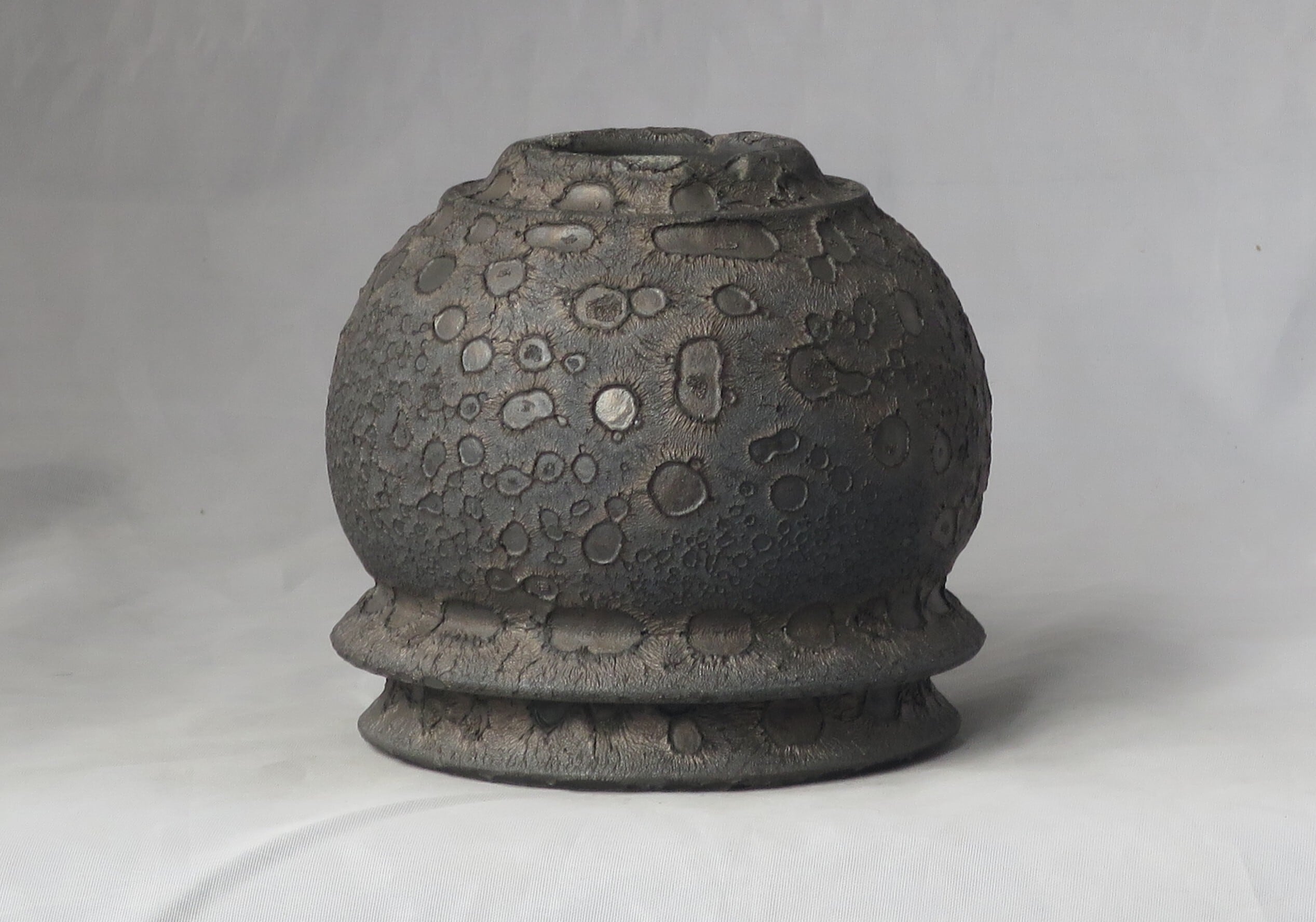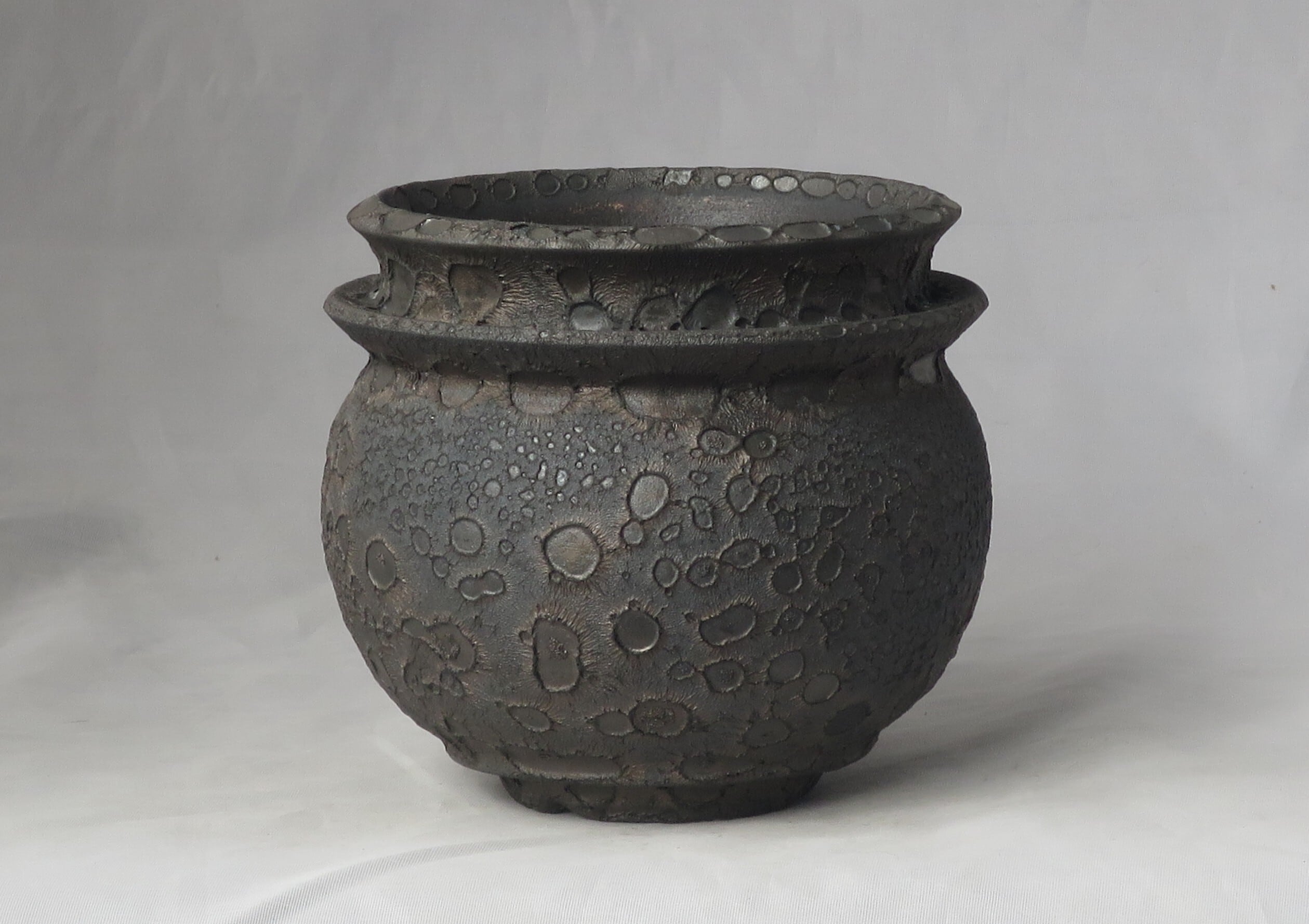 焼き上がりには、黒や金のマットな質感やクレーター状の凹凸など、多彩で力強い表情が現れます。