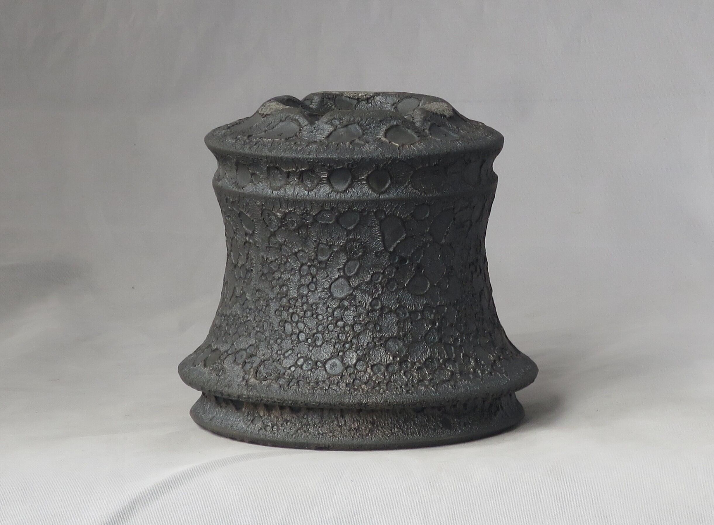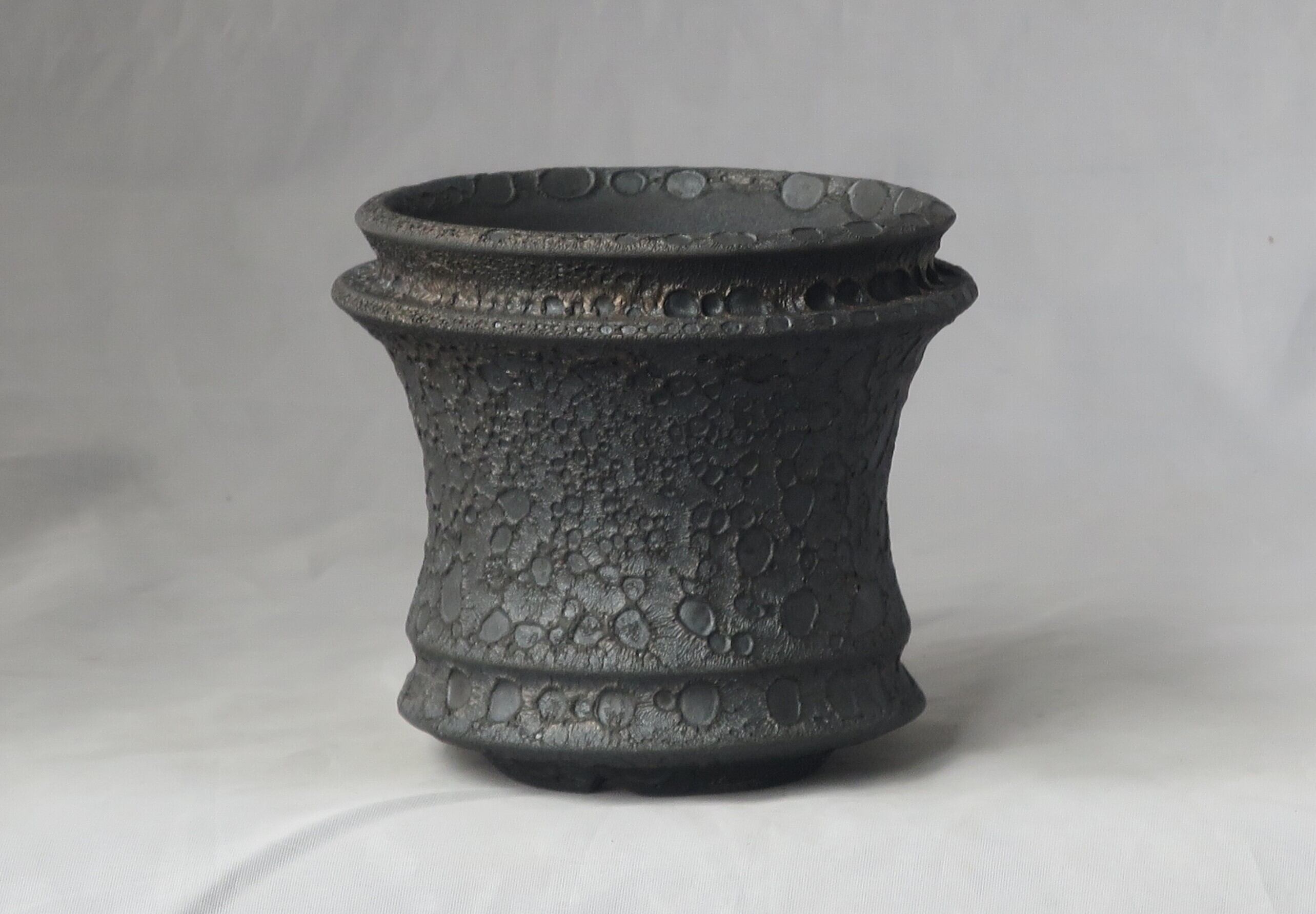 焼き上がりには、黒や金のマットな質感やクレーター状の凹凸など、多彩で力強い表情が現れます。