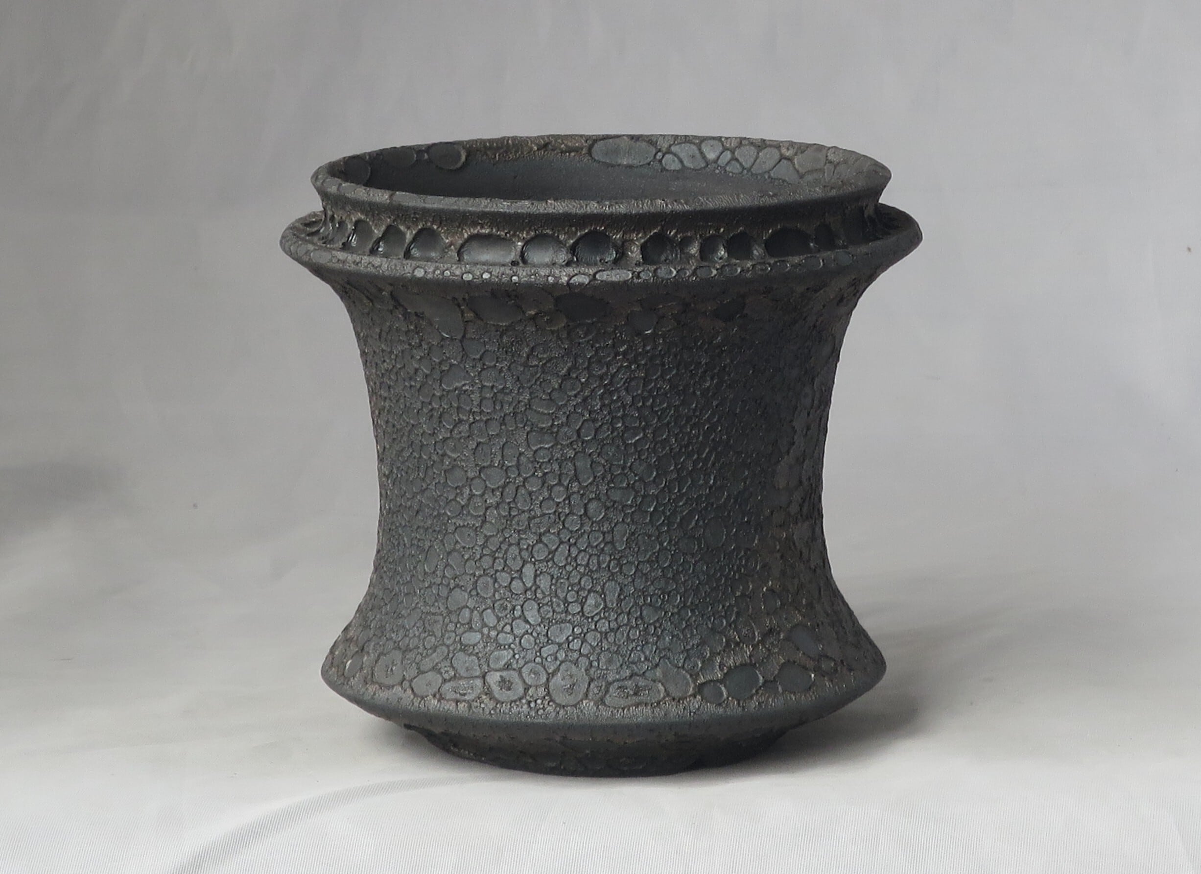 焼き上がりには、黒や金のマットな質感やクレーター状の凹凸など、多彩で力強い表情が現れます。