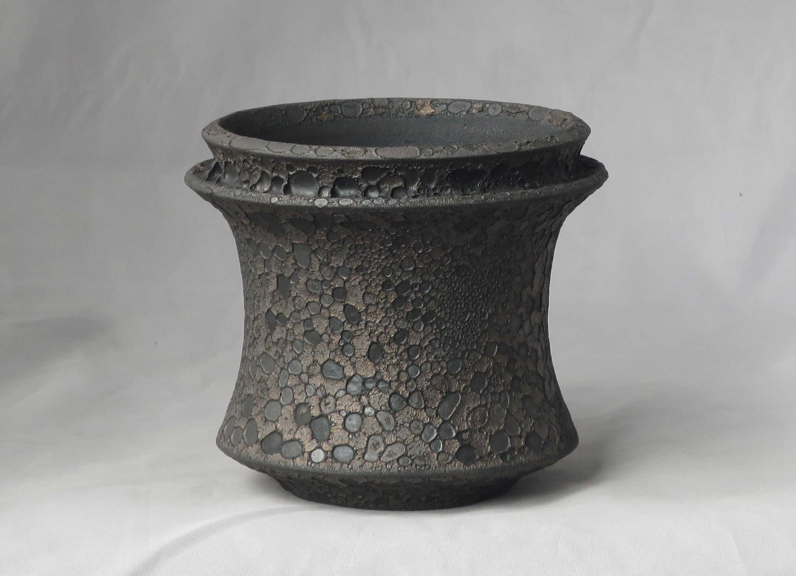 焼き上がりには、黒や金のマットな質感やクレーター状の凹凸など、多彩で力強い表情が現れます。