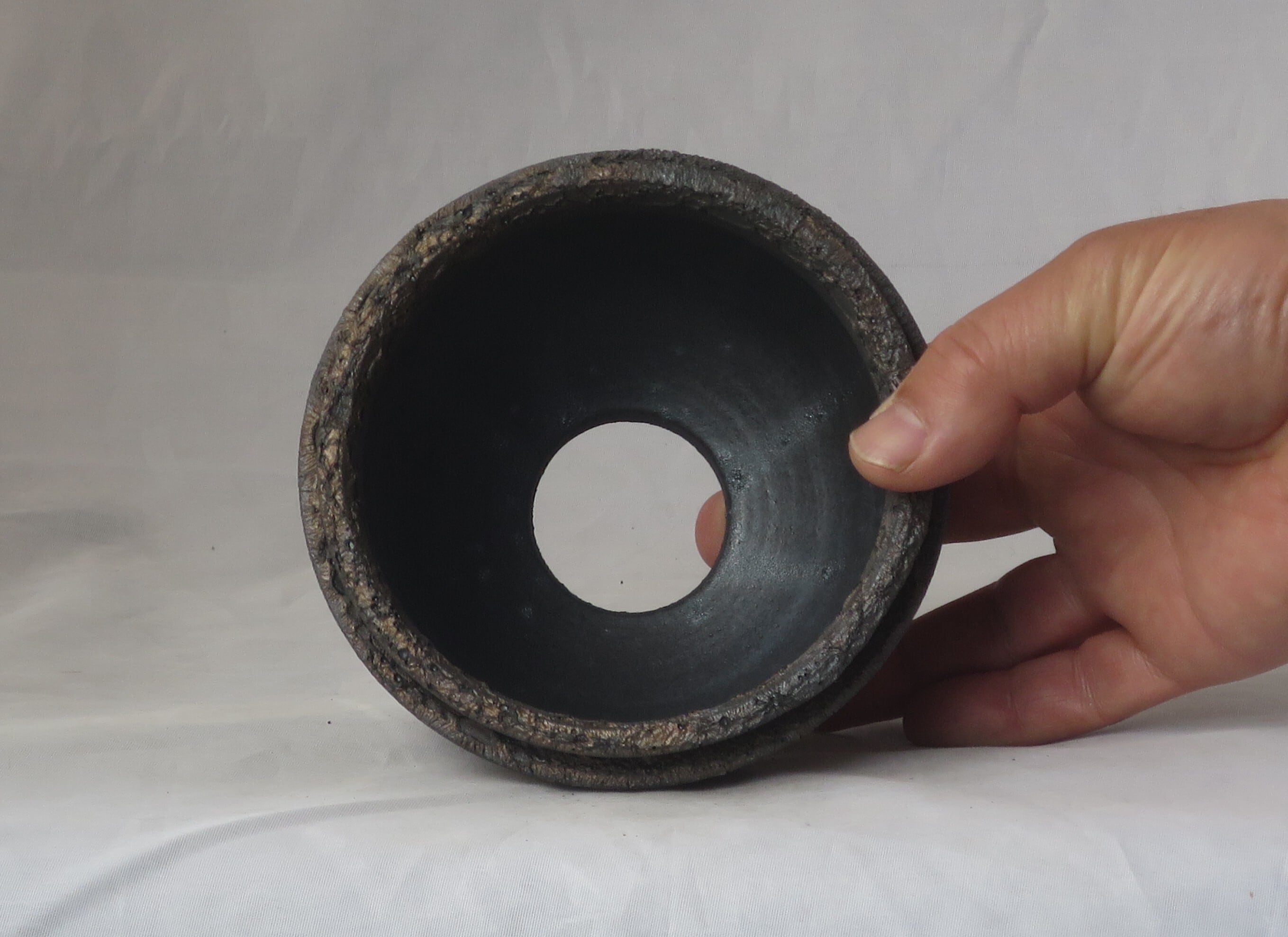 焼き上がりには、黒や金のマットな質感やクレーター状の凹凸など、多彩で力強い表情が現れます。